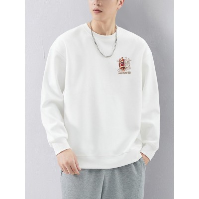 2025新款圆领卫衣男士国潮醒狮无帽上衣秋冬季春秋款舞狮港风潮牌